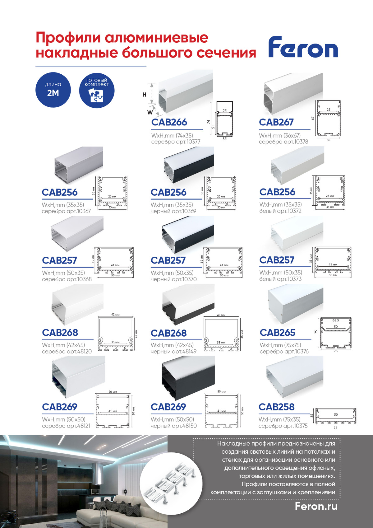 Профиль Feron для светодиодной ленты накладной с отсеком для БП серебро CAB267 10378 по цене 2 715 руб. с фотографией и техническими характеристиками. Для покупки товара нажмите кнопку "Купить" и перейдите в корзину или позвоните по телефону 8 (495) 585 32 60 или 8 (800) 222 23 53.