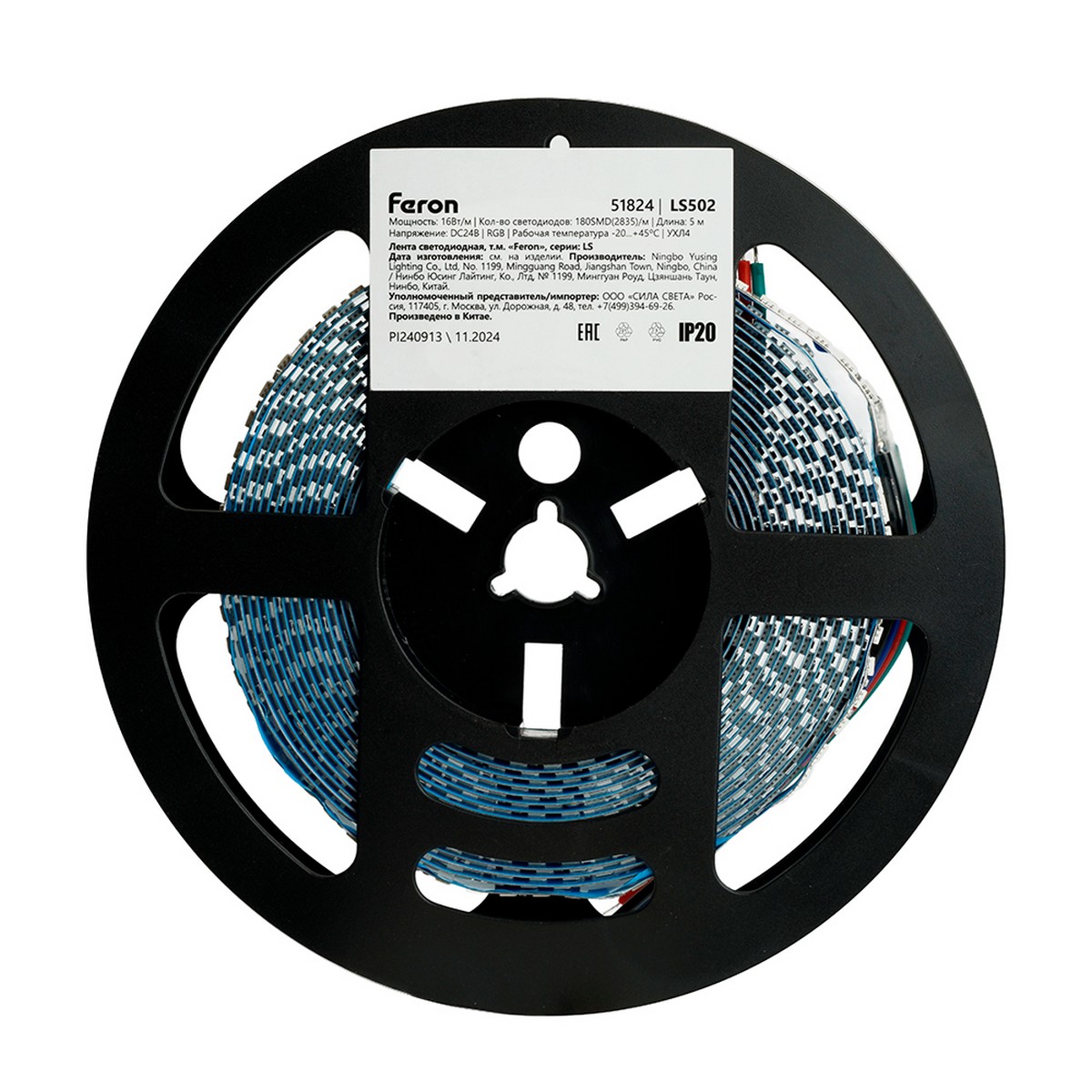 Лента светодиодная Feron LS502 180SMD(5050)/м 16Вт/м 24V IP20 RGB 5 метров 51824 по цене 1 343 руб. с фотографией и техническими характеристиками. Для покупки товара нажмите кнопку "Купить" и перейдите в корзину или позвоните по телефону 8 (495) 585 32 60 или 8 (800) 222 23 53.