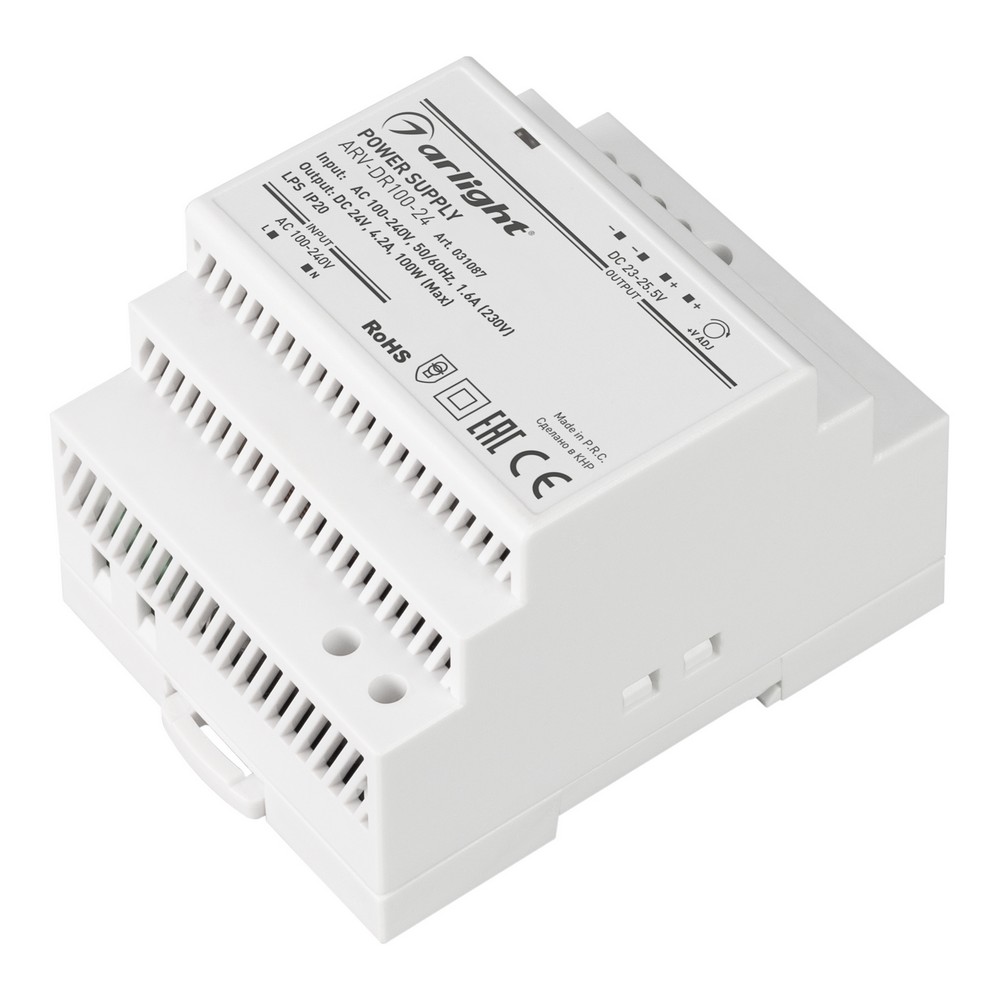 Блок питания Arlight ARV-DR100-24 (24V, 4.2A, 100W) (IP20 DIN-рейка) 031087 по цене 5 294 руб. с фотографией и техническими характеристиками. Для покупки товара нажмите кнопку "Купить" и перейдите в корзину или позвоните по телефону 8 (495) 585 32 60 или 8 (800) 222 23 53.
