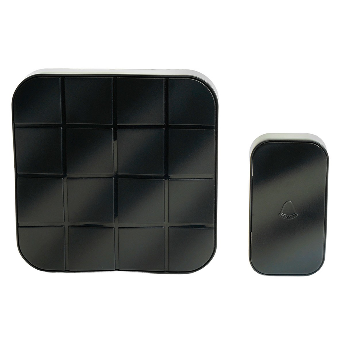 Звонок дверной беспроводной FERON E-378, 10 мелодий, дальность действия 100м, цвет черный, регулировка громкости - есть, шифрование сигнала - есть; 111*111*27 мм, КНОПКА: IP44, 1 * CR2032 (в комплекте) , раб.t -20..+60°С , размер кнопки 43*16*77мм