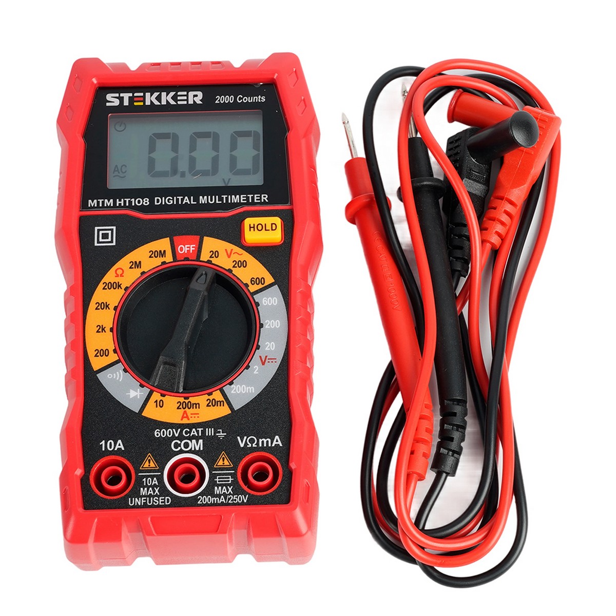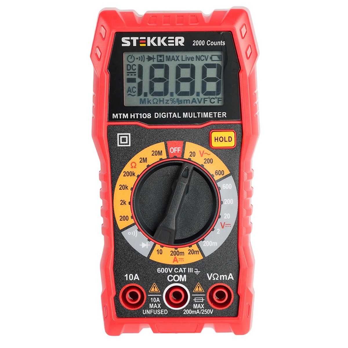 MTM HT108 Мультиметр цифровой, 2000 отсчетов, 2 батареи тип ААА 1,5В, ручная регулировка, красный