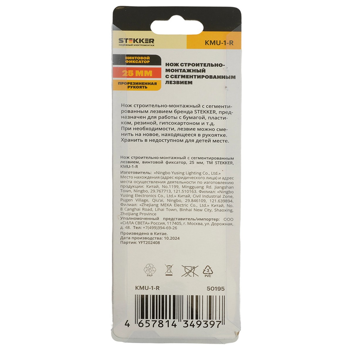 Нож стриппер STEKKER KMU-1-R с сегмент.лезвием25 мм 50195 по цене 253 руб. с фотографией и техническими характеристиками. Для покупки товара нажмите кнопку "Купить" и перейдите в корзину или позвоните по телефону 8 (495) 585 32 60 или 8 (800) 222 23 53.