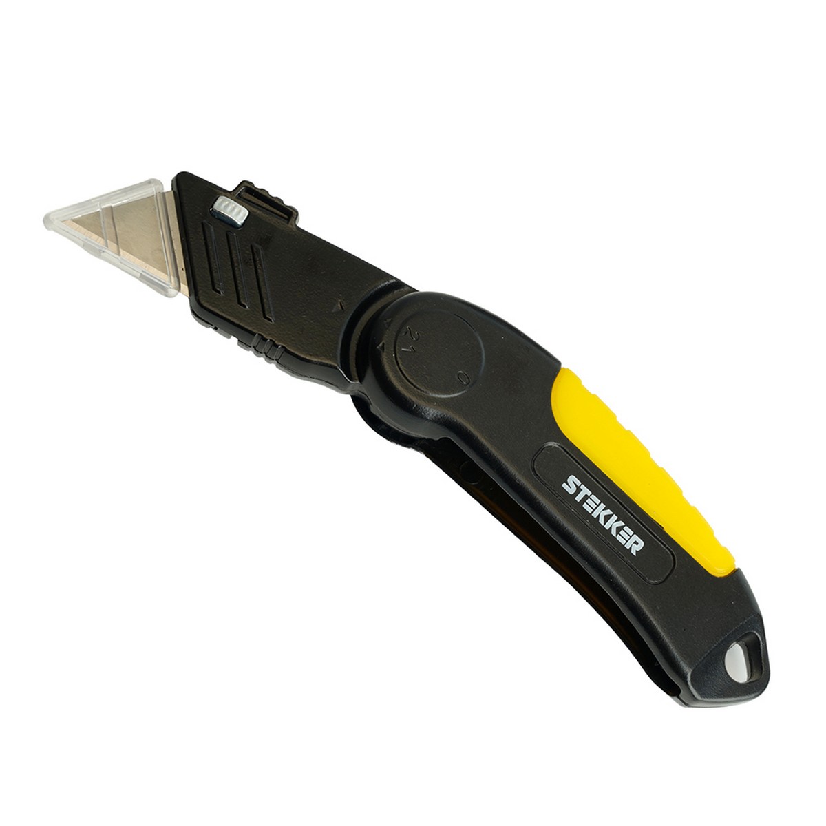 KMU-11-T Нож строительно-монтажный с трапециевидным лезвием, 19 мм, 1 лезвие в рукоятке, STEKKER