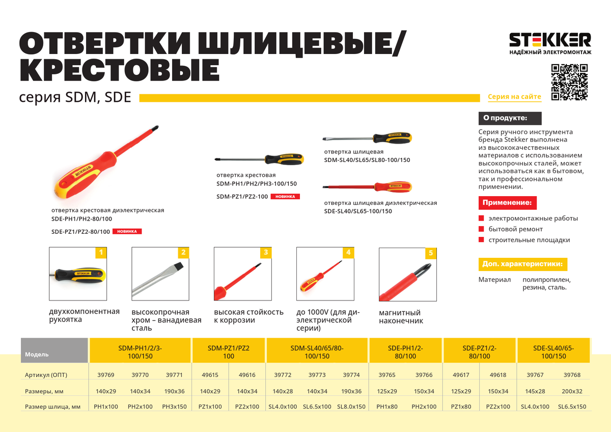 применении. SDM-PH1-100 Отвертка крестовая Ph 1 х 100 мм, Cr-V