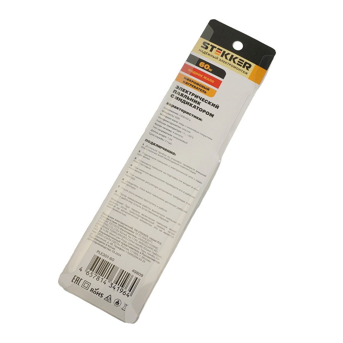 Паяльник с индикатором 60W STEKKER PLE301-60 49809 по цене 303 руб. с фотографией и техническими характеристиками. Для покупки товара нажмите кнопку "Купить" и перейдите в корзину или позвоните по телефону 8 (495) 585 32 60 или 8 (800) 222 23 53.
