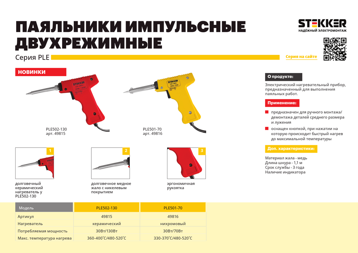 Паяльник STEKKER PLE502-130 импульсный двухрежимный с керам. нагревателем 30/130Вт 230В 49815