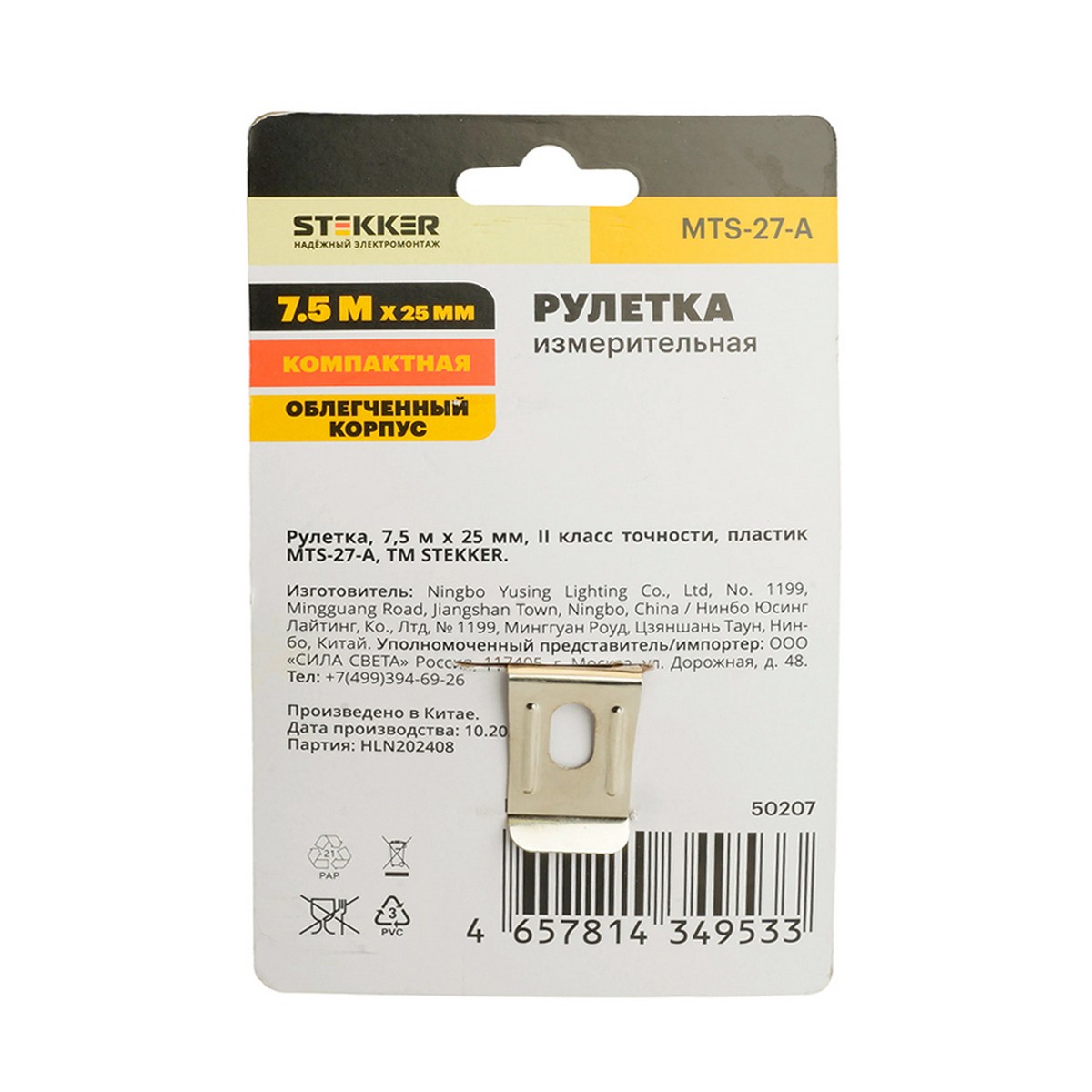 Рулетка STEKKER MTS-27-А 7,5 м х 25 мм 50207 по цене 309 руб. с фотографией и техническими характеристиками. Для покупки товара нажмите кнопку "Купить" и перейдите в корзину или позвоните по телефону 8 (495) 585 32 60 или 8 (800) 222 23 53.