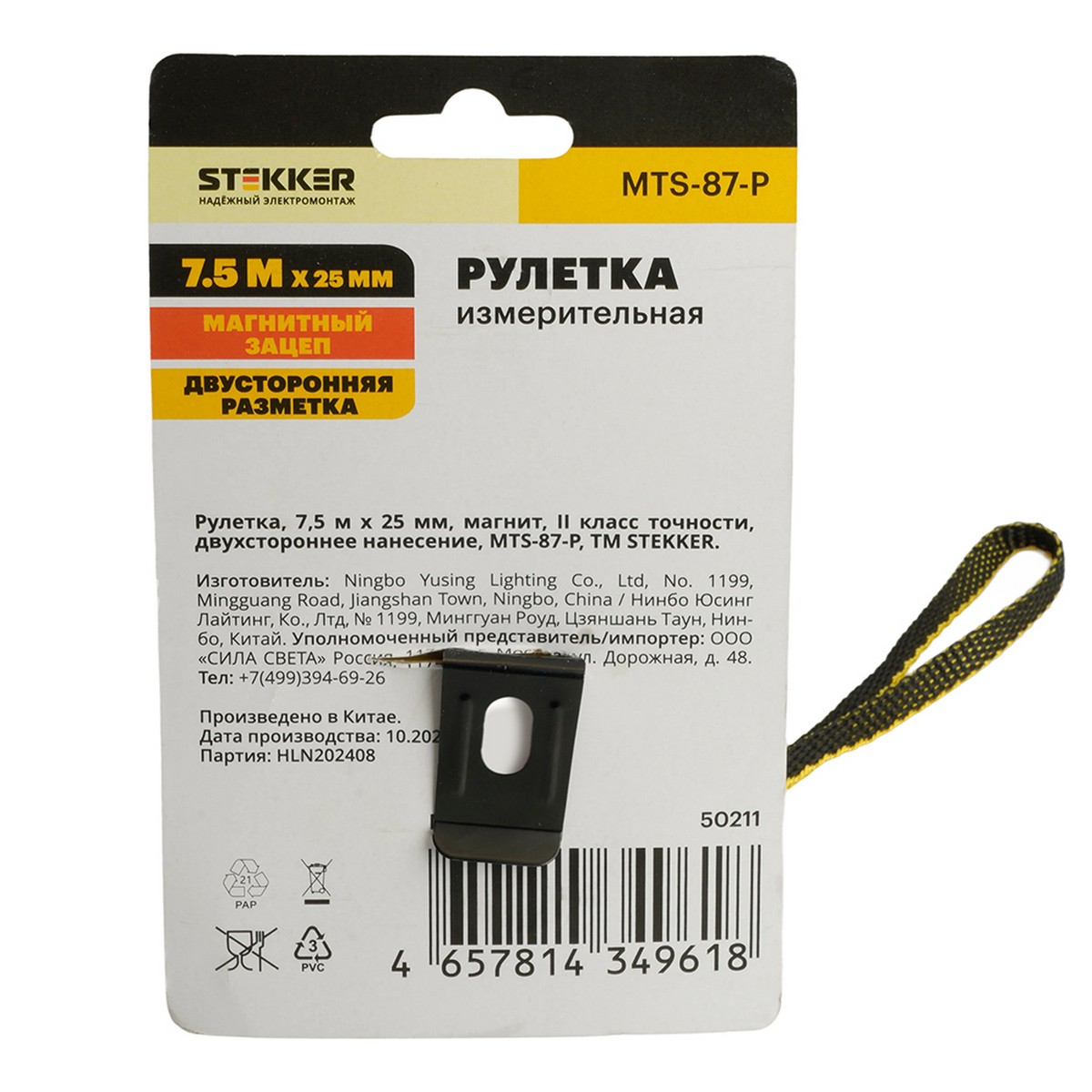 MTS-87-P Рулетка, 7,5 м х 25 мм, магнит, II класс точности, двухстороннее нанесение, STEKKER