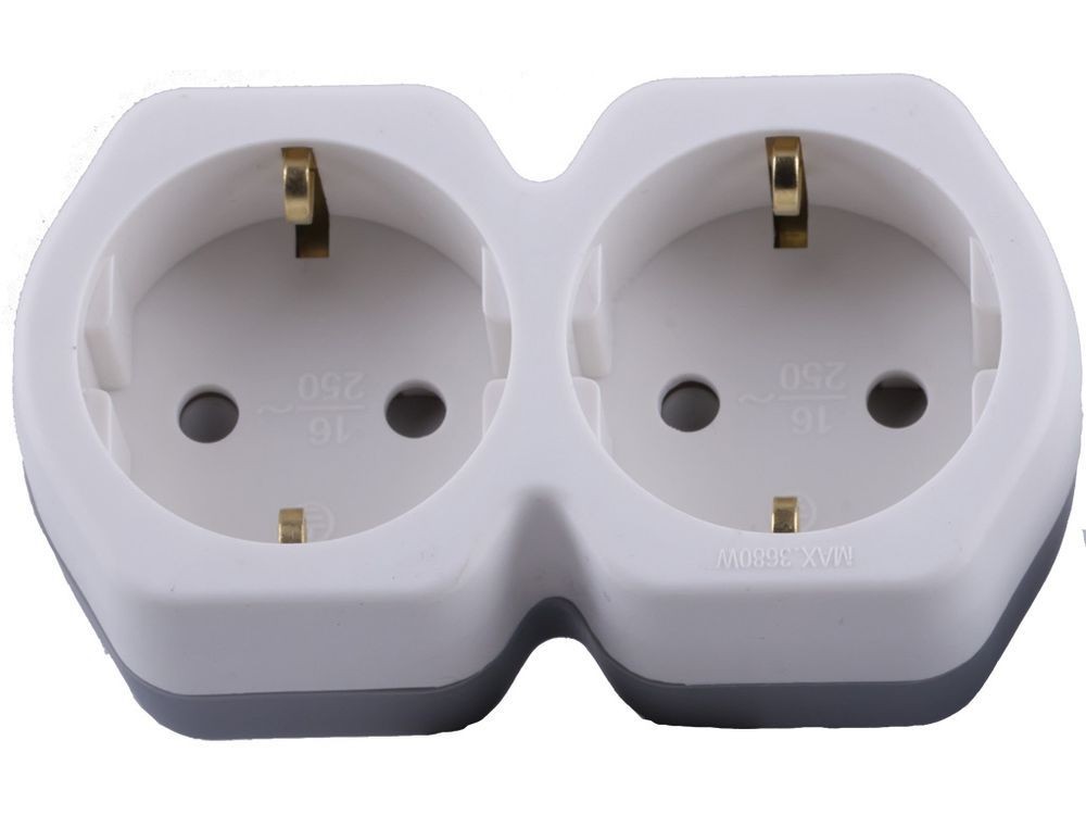 Сетевой разветвитель STEKKER ADP16-12-20 с заземлением, количество присоединяемых устройств 2, номинальное напряжение 250В, номинальный ток 16А, материал пластик, цвет белый+серый, IP20