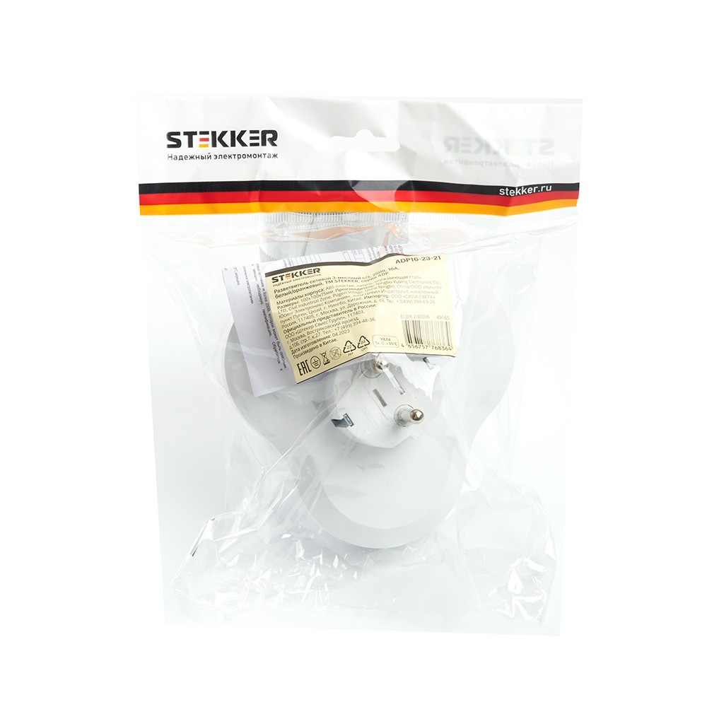 Сетевой разветвитель STEKKER ADP16-23-21 (ADP16-23-21) с заземлением, количество присоединяемых устройств 3, номинальное напряжение 250В, номинальный ток 16А, материал ABS пластик, латунь, нержавеющая сталь, цвет белый, IP20