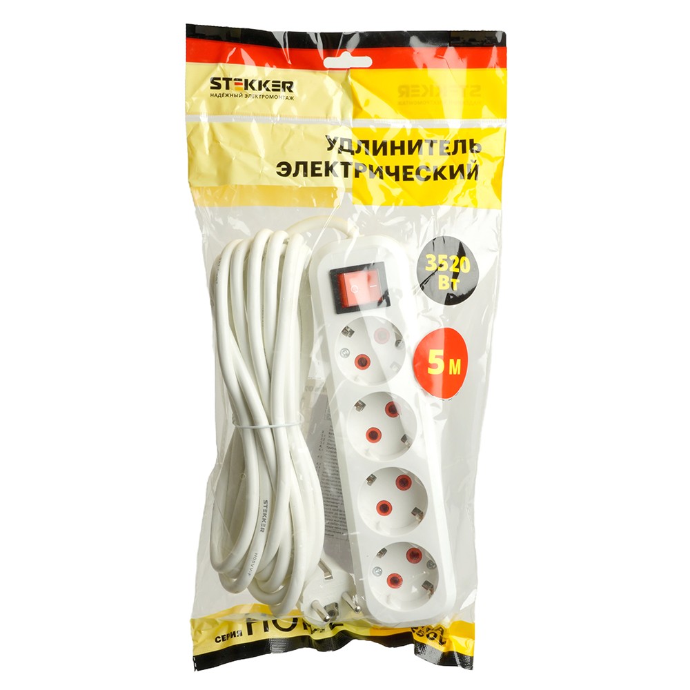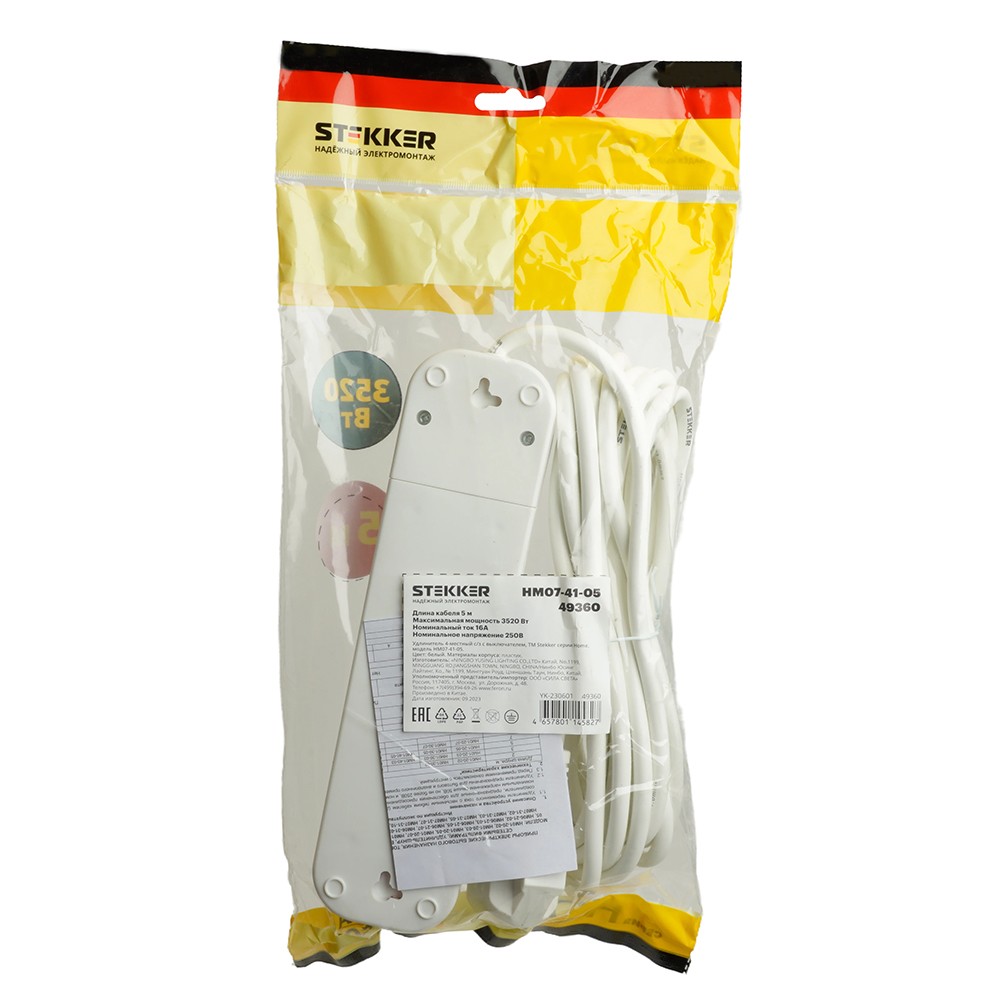 Удлинитель STEKKER четырехместный с/з с выключ. HM07-41-05 5м Home (У16А-003) белый 49360 по цене 606 руб. с фотографией и техническими характеристиками. Для покупки товара нажмите кнопку "Купить" и перейдите в корзину или позвоните по телефону 8 (495) 585 32 60 или 8 (800) 222 23 53.