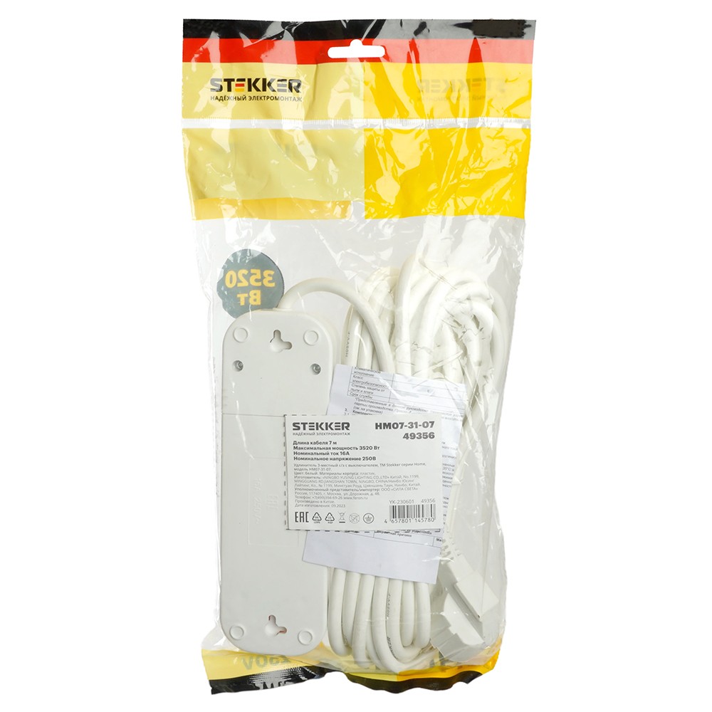 Удлинитель STEKKER трехместный с/з с выключ. HM07-31-07 7м Home (У16А-002) белый 49356 по цене 677 руб. с фотографией и техническими характеристиками. Для покупки товара нажмите кнопку "Купить" и перейдите в корзину или позвоните по телефону 8 (495) 585 32 60 или 8 (800) 222 23 53.