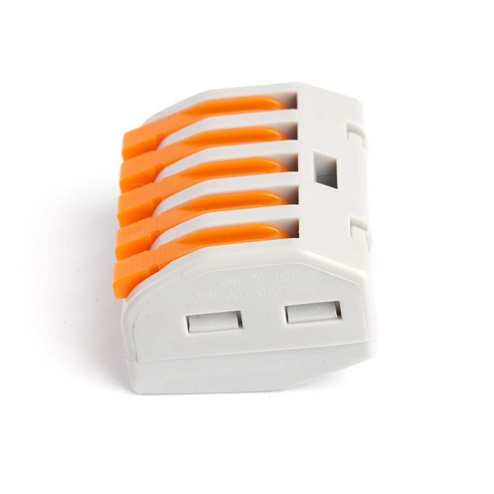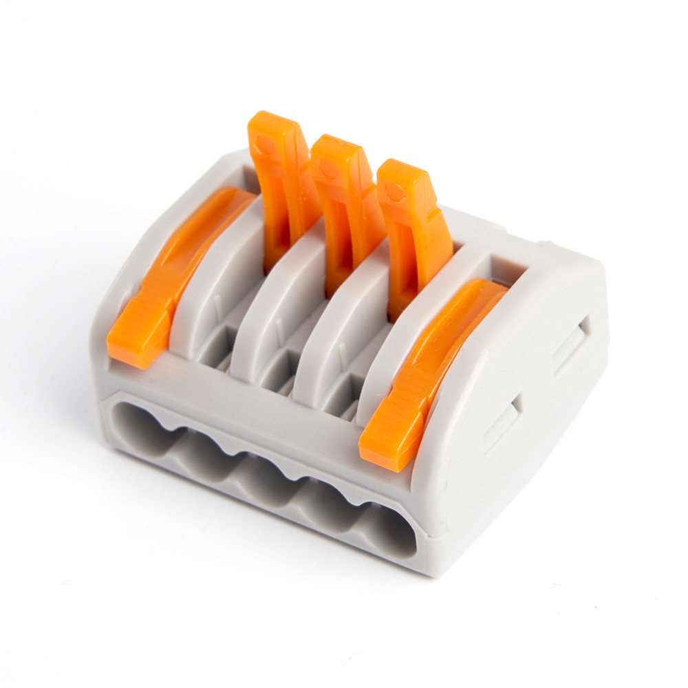 Клемма пружинная универсальная STEKKER LD222-615, 5-проводная 0,5-6 мм2, 450В, 41А, без пасты, материал изделия пластик, латунь. Тип провода одножильный/многожильный, материал провода медь, температура окружающей среды -20...+40°C