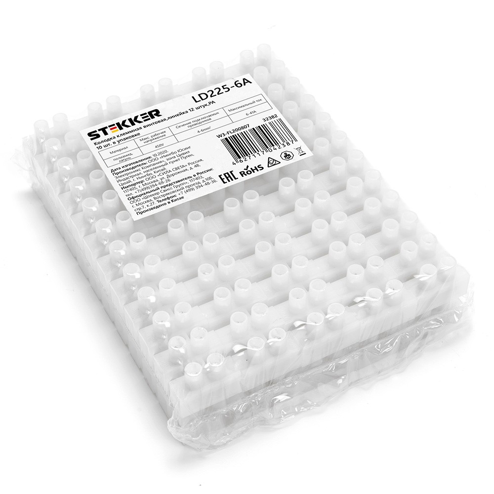 Колодка клеммная винтовая STEKKER, линейка 12 штук, полиамид, LD225-6A 32382 по цене 41 руб. с фотографией и техническими характеристиками. Для покупки товара нажмите кнопку "Купить" и перейдите в корзину или позвоните по телефону 8 (495) 585 32 60 или 8 (800) 222 23 53.