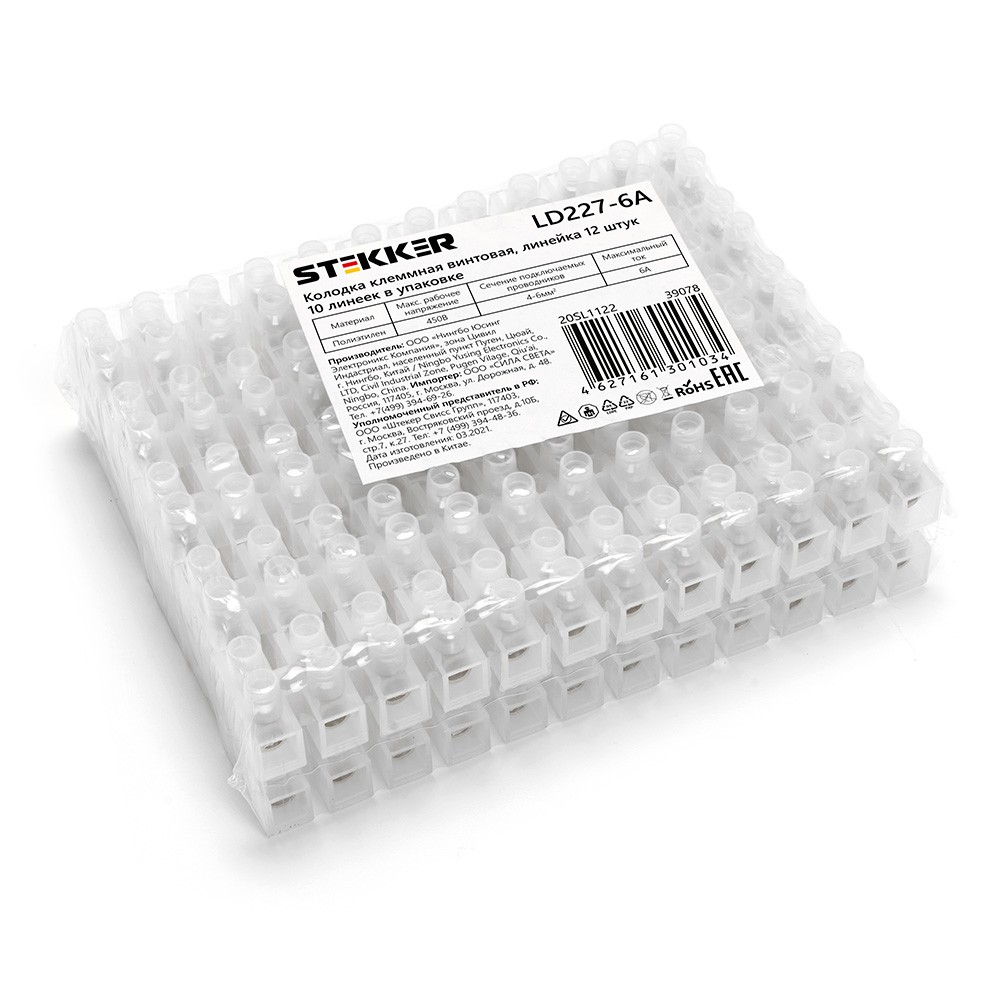Колодка клеммная винтовая STEKKER, линейка 12 штук, полиэтилен, LD227-6A 39078 по цене 33 руб. с фотографией и техническими характеристиками. Для покупки товара нажмите кнопку "Купить" и перейдите в корзину или позвоните по телефону 8 (495) 585 32 60 или 8 (800) 222 23 53.