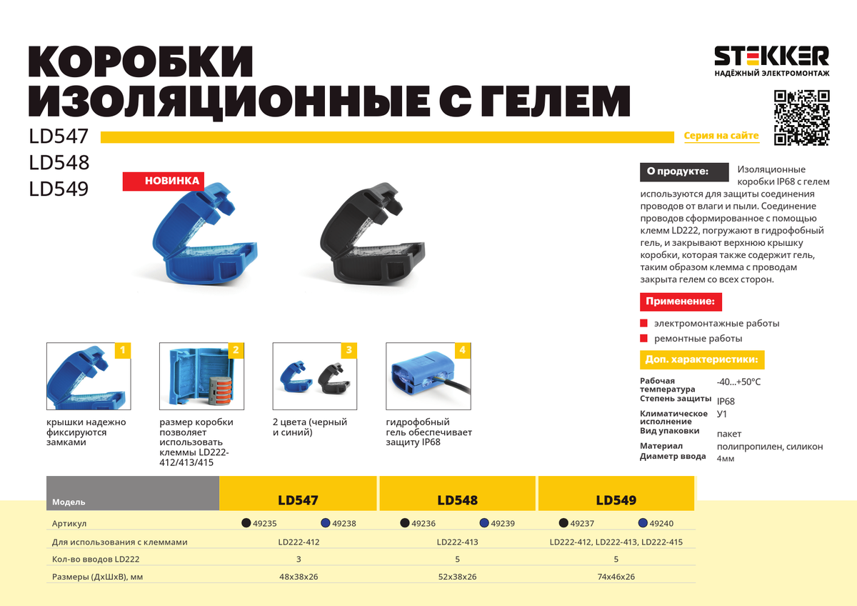 Коробка Stekker LD549 изоляционная с гелем 450V синий 49240 по цене 351 руб. с фотографией и техническими характеристиками. Для покупки товара нажмите кнопку "Купить" и перейдите в корзину или позвоните по телефону 8 (495) 585 32 60 или 8 (800) 222 23 53.
