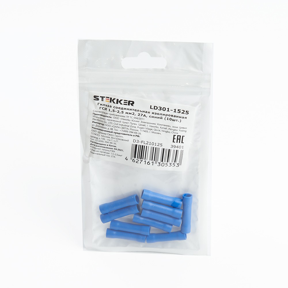 Гильза соединительная изолированная STEKKER LD301-1525 сечение 1,5-2,5 мм2, 27A, синий (DIY упаковка 10 шт) 39401 по цене 38 руб. с фотографией и техническими характеристиками. Для покупки товара нажмите кнопку "Купить" и перейдите в корзину или позвоните по телефону 8 (495) 585 32 60 или 8 (800) 222 23 53.