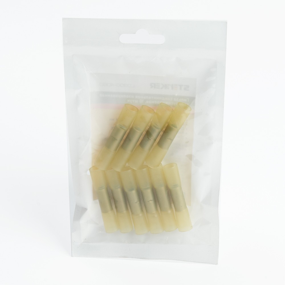 Термоусадочные коннекторы STEKKER LD300-4060, длина 42мм. 10шт. в наборе, цвет: желтый. Коэффициент усадки 2:1, диапазон рабочих температур -10..+35°C, температура усадки +85..+125°C, номинальный ток 48А, для проводов сечением мм2.