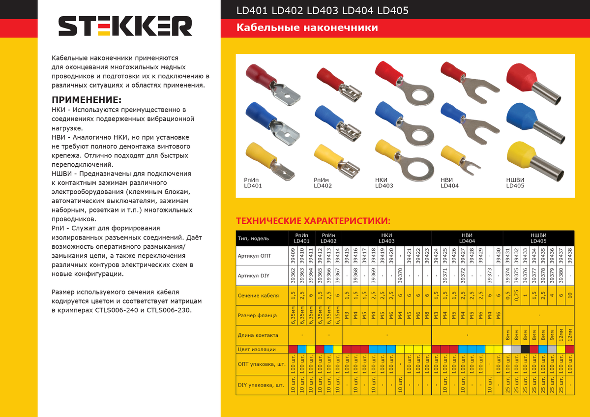 Размер используемого сечения кабеля кодируется цветом и соответствует матрицам в кримперах CTLS006-240 и CTLS006-230.