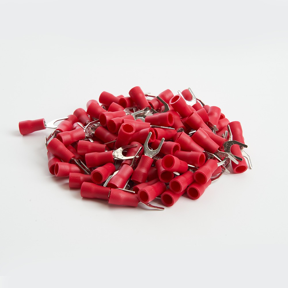 Наконечник Вилочный Изолированный STEKKER; М4 0,5-1,5 - 0,6 мм; , латунь, поливинилхлорид (PVC), красный