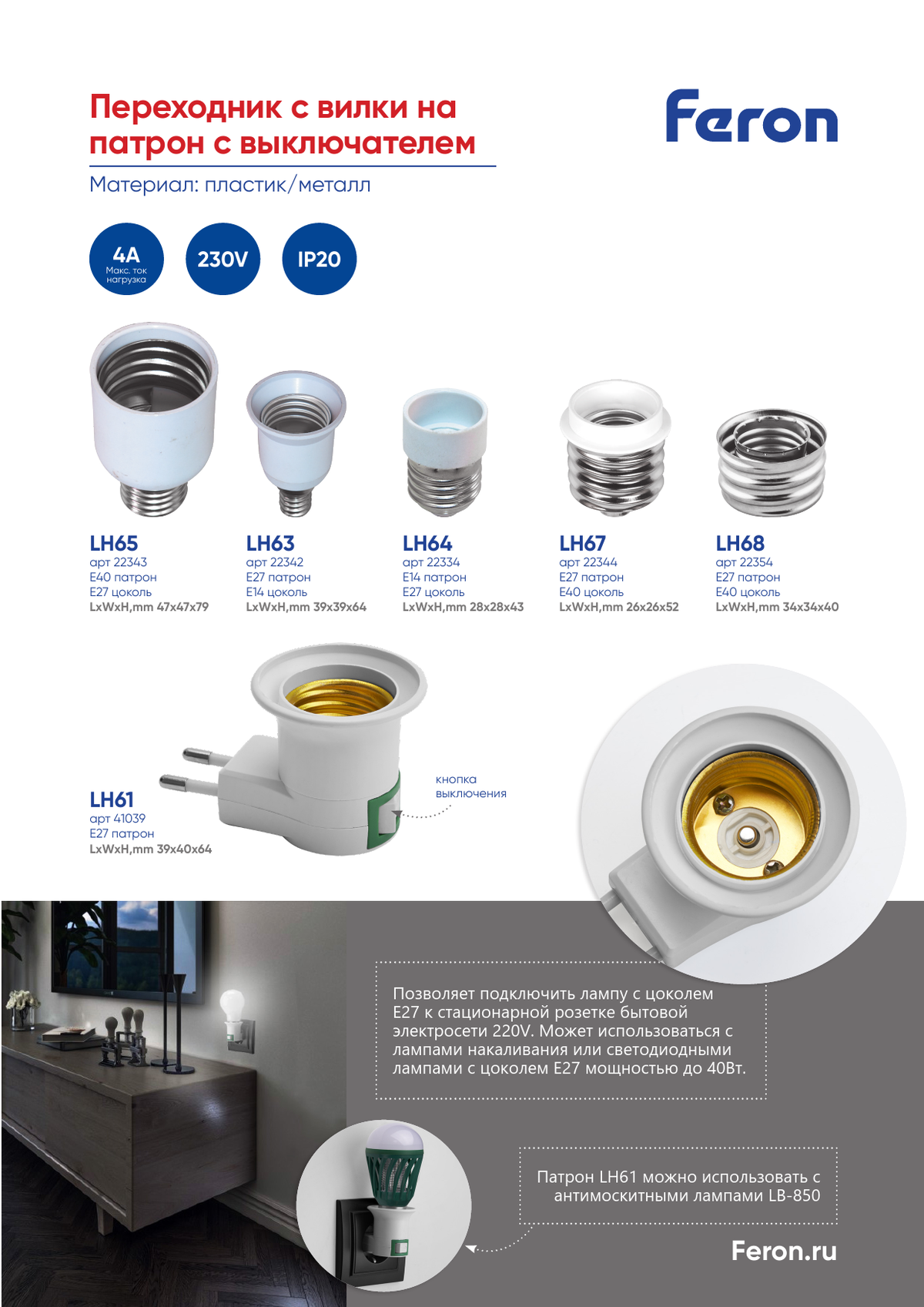 Патрон-переходник для ламп 250V Е40-Е27 LH67 22344 по цене 62 руб. с фотографией и техническими характеристиками. Для покупки товара нажмите кнопку "Купить" и перейдите в корзину или позвоните по телефону 8 (495) 585 32 60 или 8 (800) 222 23 53.