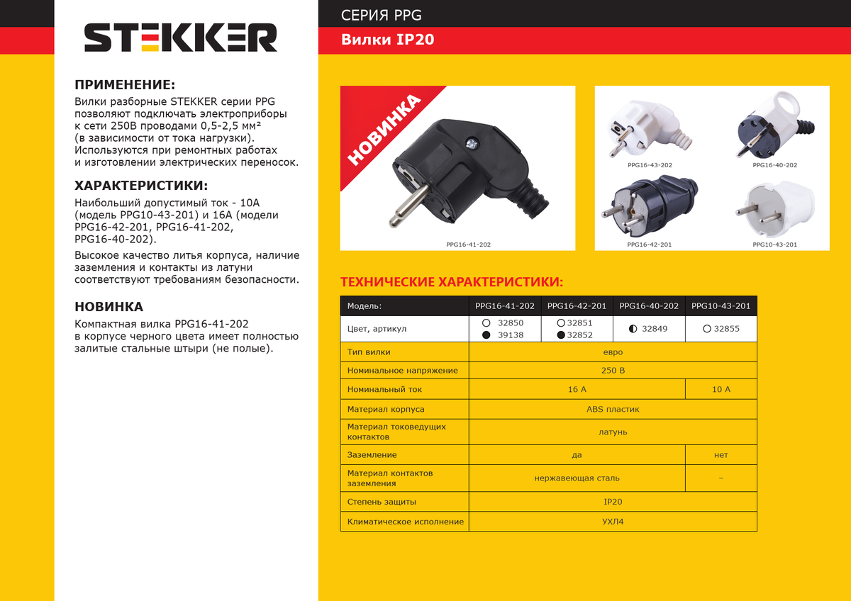 Вилка угловая STEKKER PPG16-41-202, с заземлением, тип установки переносная. Для проводов сечением 1мм2. Материал изделия пластик; цвет черный; размер 68*37*53мм. Номинальное напряжение 250В, Номинальный ток 16А, диапазон рабочих температур 0..+35°C, степень пылевлагозащиты IP20