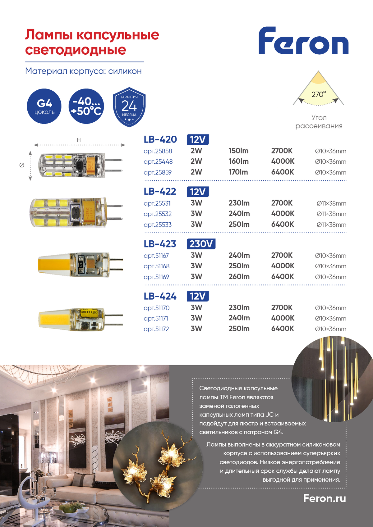 Лампа светодиодная Feron LB-420 G4 2W 6400K предназначена для освещения в 12V системах. Обеспечивает яркий белый свет (6400K) с мощностью 2W и световым потоком 170Lm. Капсульная форма и угол рассеивания 270° идеально подходят для использования в декоративном и функциональном освещении. Прозрачный рассеиватель обеспечивает равномерное распределение света. Цоколь G4 подходит для большинства стандартных осветительных приборов.