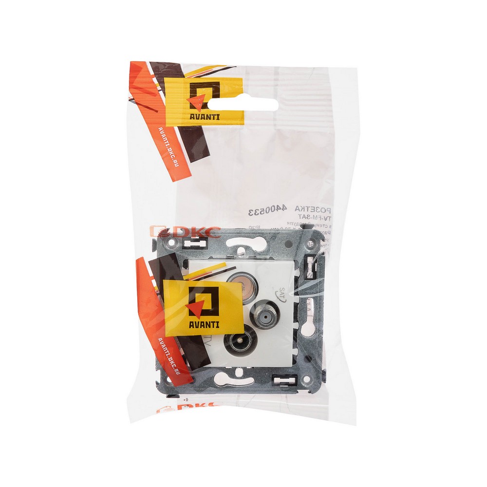 Розетка TV DKC Avanti-FM-SAT в стену "Белое облако" 4400533 по цене 2 624 руб. с фотографией и техническими характеристиками. Для покупки товара нажмите кнопку "Купить" и перейдите в корзину или позвоните по телефону 8 (495) 585 32 60 или 8 (800) 222 23 53.