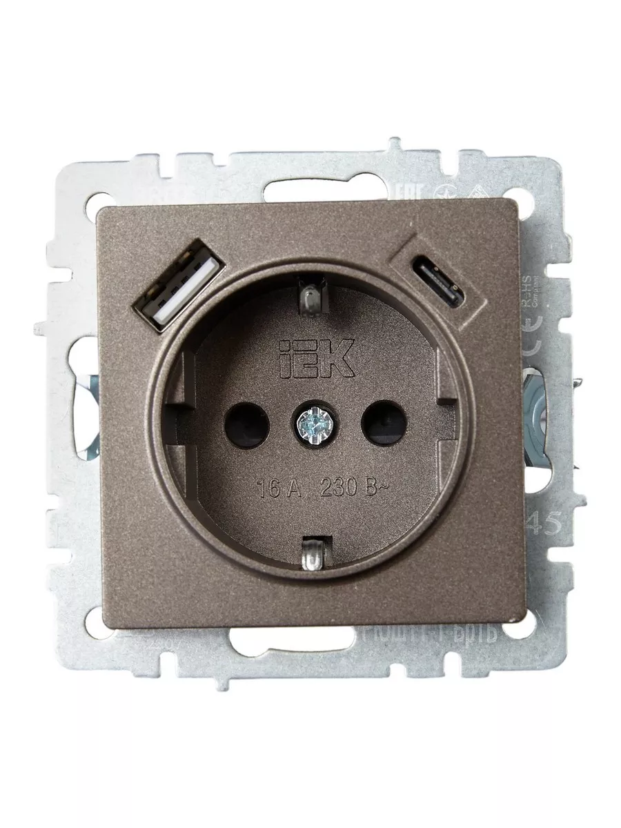 Розетка IEK BRITE с с/з и шторками 16А с USB A+C 18Вт РЮш11-1-БрТБ бронза BR-R14-16-U22-018-K45 по цене 4 112 руб. с фотографией и техническими характеристиками. Для покупки товара нажмите кнопку "Купить" и перейдите в корзину или позвоните по телефону 8 (495) 585 32 60 или 8 (800) 222 23 53.