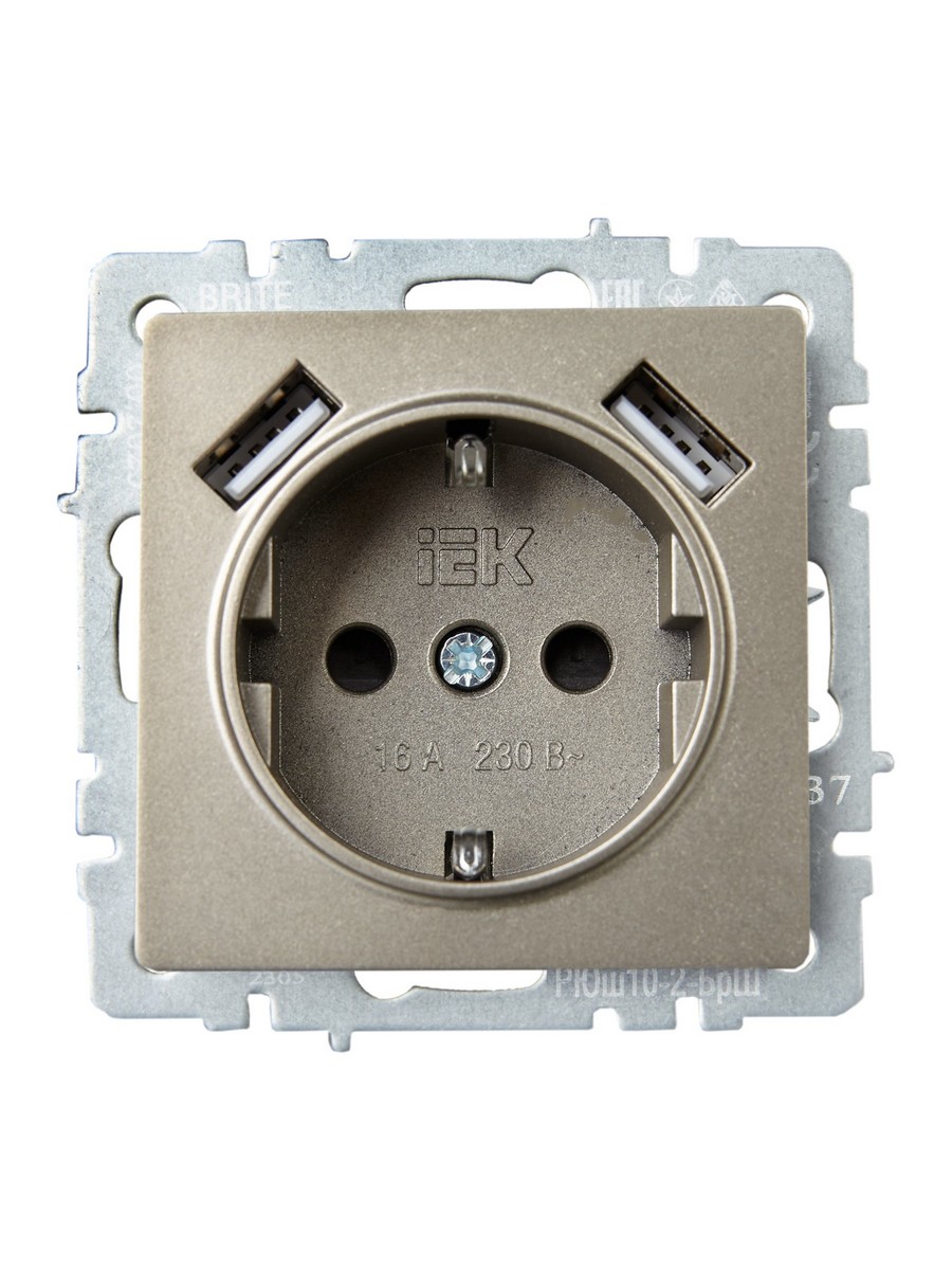 Розетка IEK BRITE с с/з и шторками 16А с USB A+A 3,1А РЮш10-2-БрШ шампань BR-R14-16-U21-D31-K37 по цене 2 822 руб. с фотографией и техническими характеристиками. Для покупки товара нажмите кнопку "Купить" и перейдите в корзину или позвоните по телефону 8 (495) 585 32 60 или 8 (800) 222 23 53.