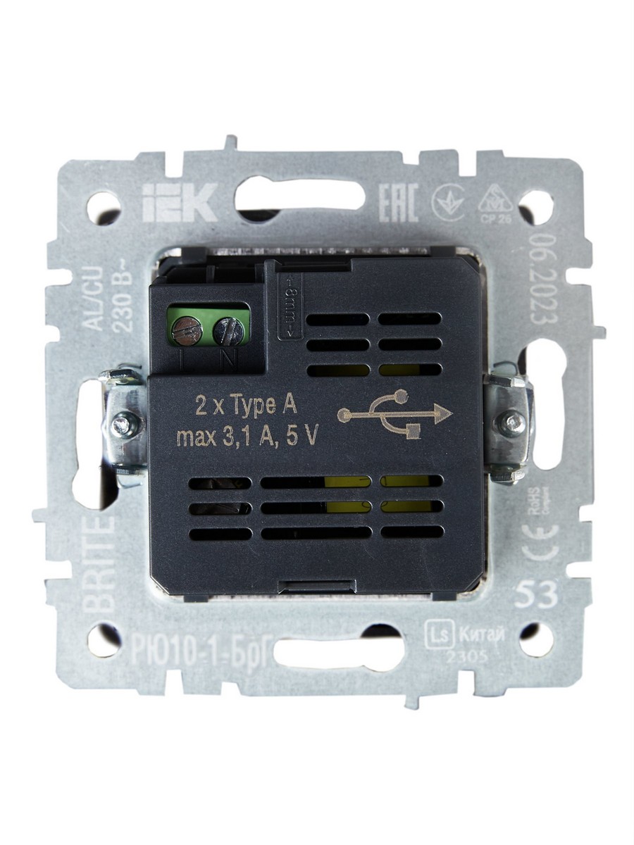 Розетка IEK BRITE USB A+A 3,1А РЮ10-1-БрГ графит BR-U21-D31-K53 по цене 1 976 руб. с фотографией и техническими характеристиками. Для покупки товара нажмите кнопку "Купить" и перейдите в корзину или позвоните по телефону 8 (495) 585 32 60 или 8 (800) 222 23 53.