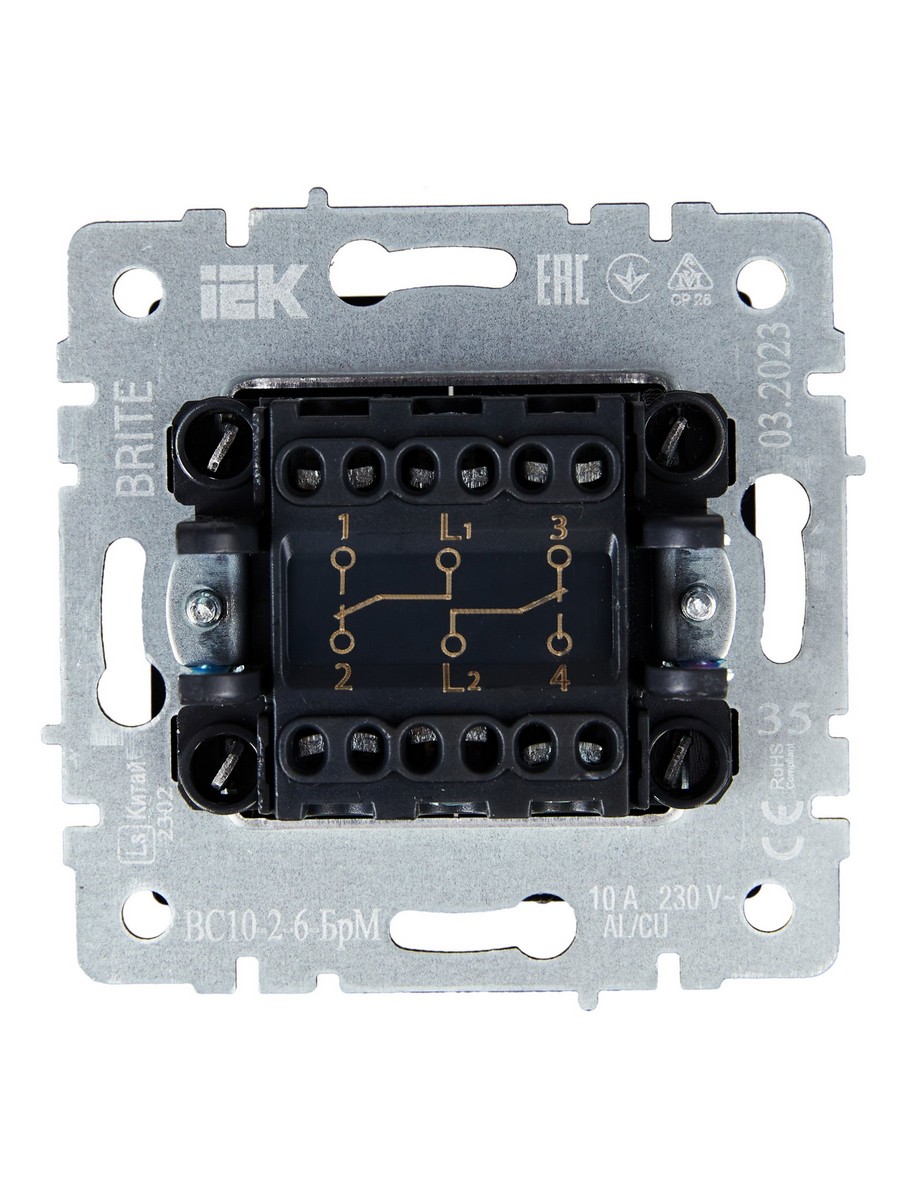 Выключатель IEK BRITE 2-клавишный проходной 10А ВС10-2-6-БрМ маренго BR-V22-0-10-K35 по цене 517 руб. с фотографией и техническими характеристиками. Для покупки товара нажмите кнопку "Купить" и перейдите в корзину или позвоните по телефону 8 (495) 585 32 60 или 8 (800) 222 23 53.