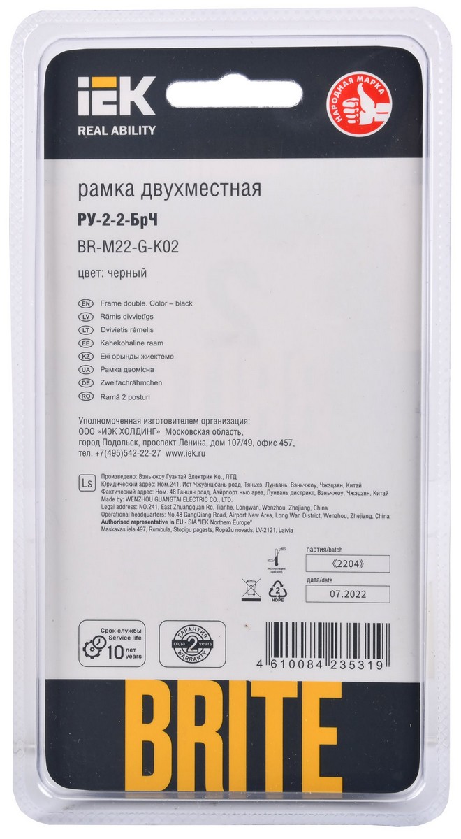 Рамка IEK BRITE 2-местная РУ-2-2-БрЧ стекло черный BR-M22-G-K02 по цене 338 руб. с фотографией и техническими характеристиками. Для покупки товара нажмите кнопку "Купить" и перейдите в корзину или позвоните по телефону 8 (495) 585 32 60 или 8 (800) 222 23 53.