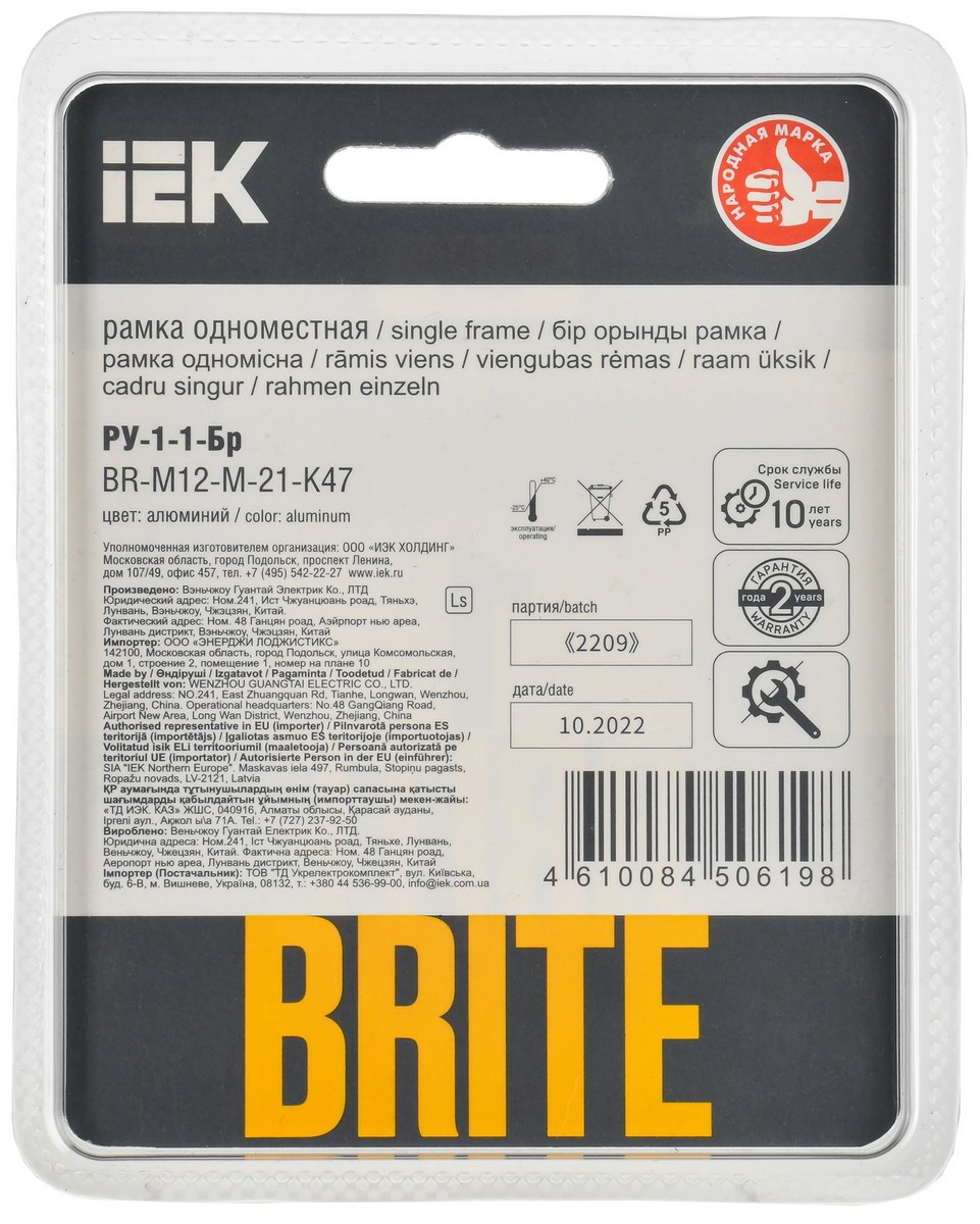 Рамка IEK BRITE DECOR Алюминий/алюм металл. скругл.угол 1-мест. РУ-1-1-Бр RE AL BR-M12-M-21-K47 по цене 793 руб. с фотографией и техническими характеристиками. Для покупки товара нажмите кнопку "Купить" и перейдите в корзину или позвоните по телефону 8 (495) 585 32 60 или 8 (800) 222 23 53.