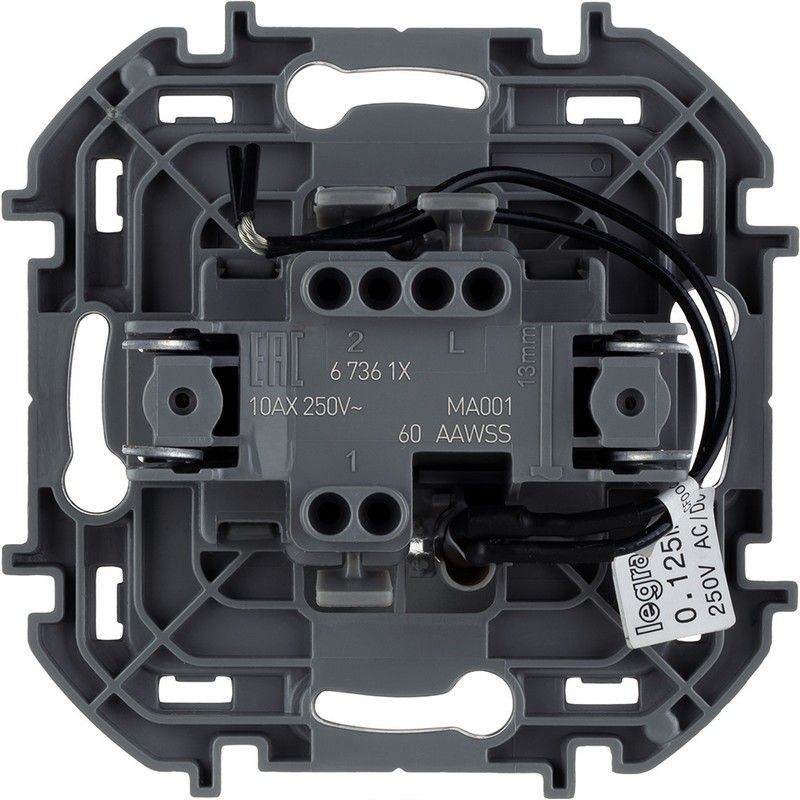 Выключатель одноклавишный с подсветкой/индикацией Legrand Inspiria для скрытого монтажа, цвет "Алюминий", номинальный ток 10 А, напряжение ~250 В.