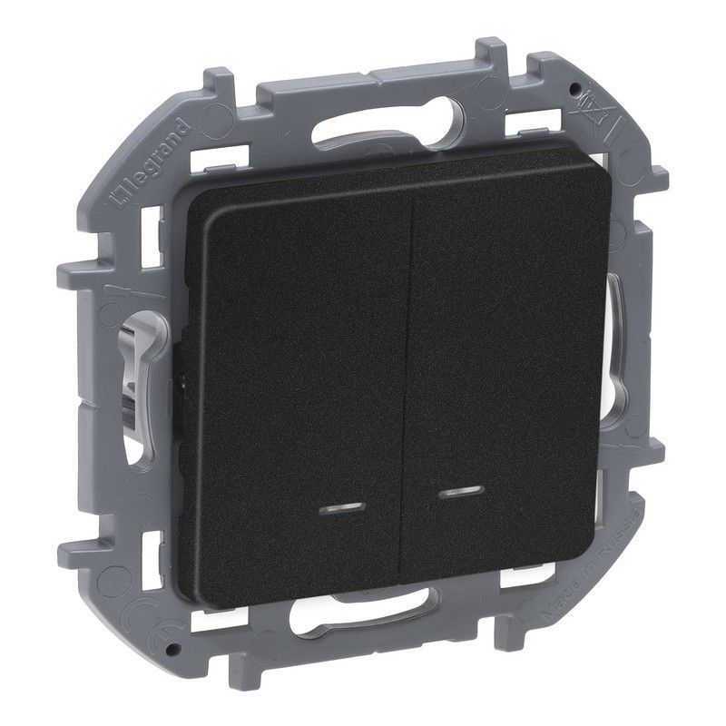 Выключатель двухклавишный с подсветкой/индикацией Legrand Inspiria для скрытого монтажа, цвет "Антрацит", номинальный ток 10 А, напряжение ~250В.