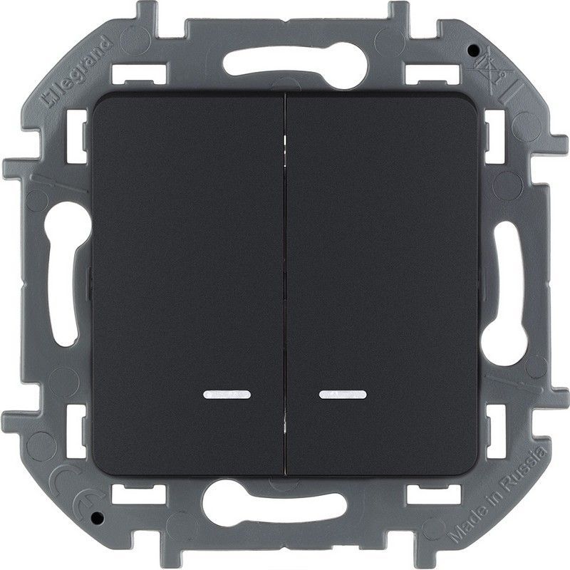 Выключатель двухклавишный с подсветкой/индикацией Legrand Inspiria для скрытого монтажа, цвет "Антрацит", номинальный ток 10 А, напряжение ~250В.