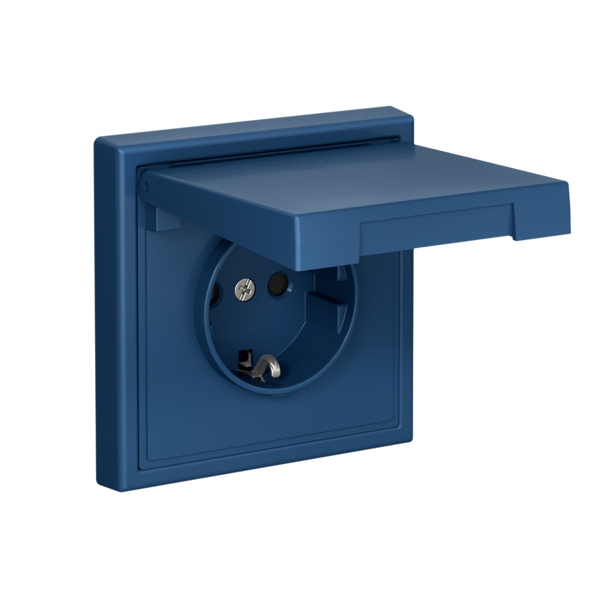 Механизм с быстрозажимными клеммами Systeme Electric серии ArtGallery в цвете аквамарин розетки одинарной с заземлением, шторками и крышкой подходит для сетей 250 В, на ток 16 А.