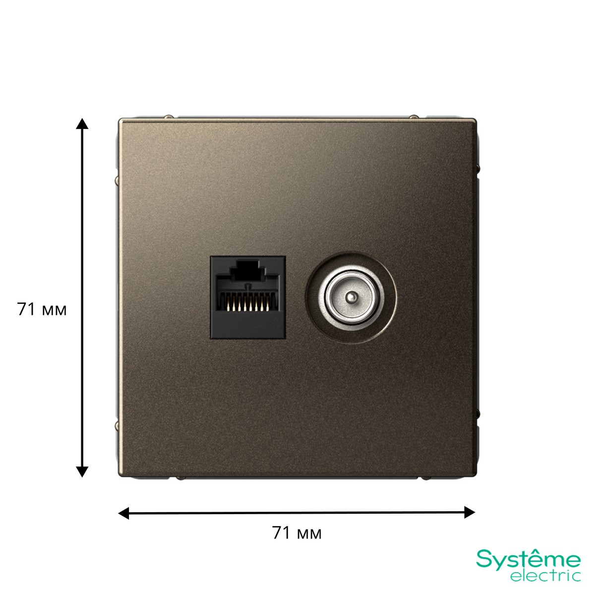 Розетка Systeme Electric ArtGallery Мокко двойная предназначена для подключения телевизора и компьютера. Артикул: GAL000689. Обладает механизмом для TV и RJ45 кат. 5Е, обеспечивая стабильное соединение. Элегантный цвет мокко впишется в любой интерьер. Идеально подходит для организации рабочих и развлекательных зон.