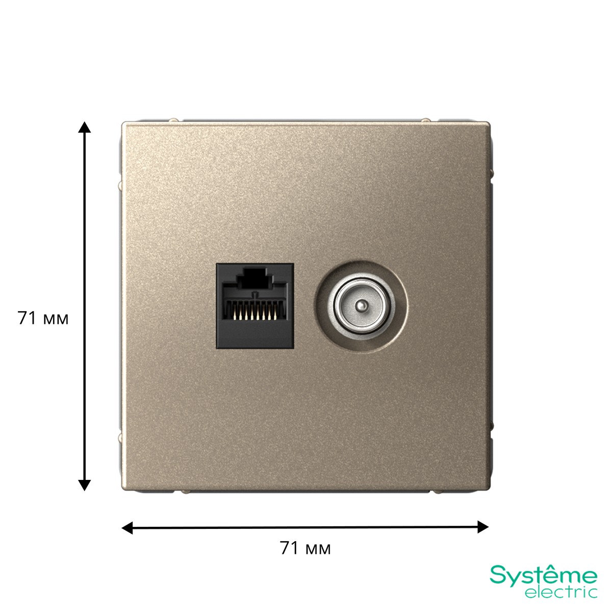 Розетка Systeme Electric ArtGallery в цвете шампань сочетает в себе функциональность и элегантный дизайн. Двойная конфигурация, включающая разъем для телевизора и компьютерный порт RJ45 категории 5E, обеспечивает высокую скорость передачи данных и стабильное подключение. Это идеальное решение для современных домашних кинотеатров и офисов, где важна качественная связь и мультимедийные возможности. Простота установки и стильный внешний вид делают данную розетку универсальным выбором для любых интерьеров.