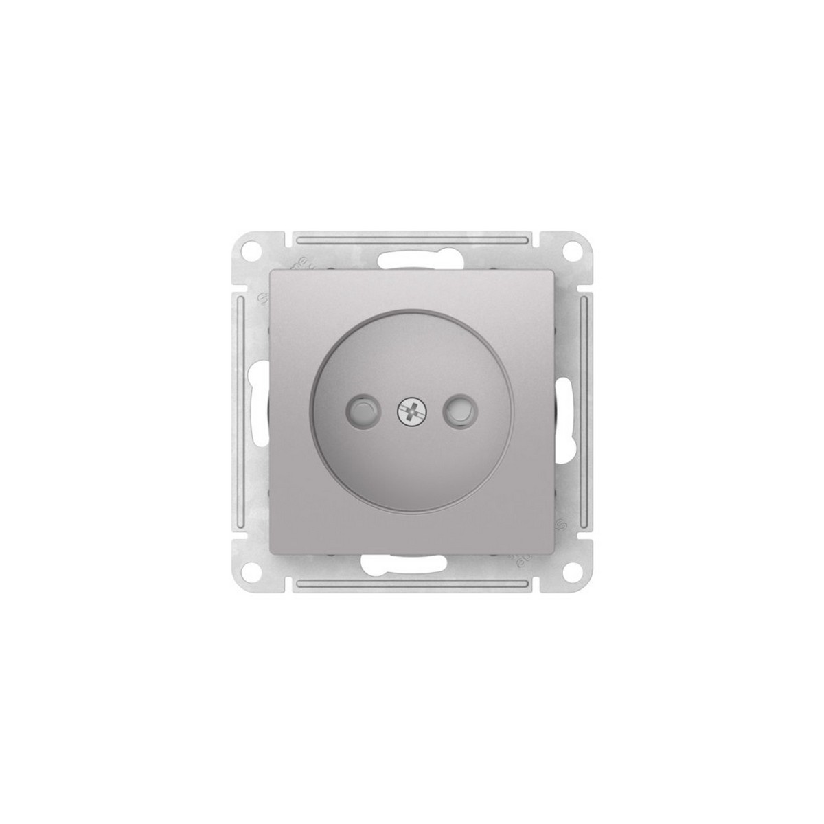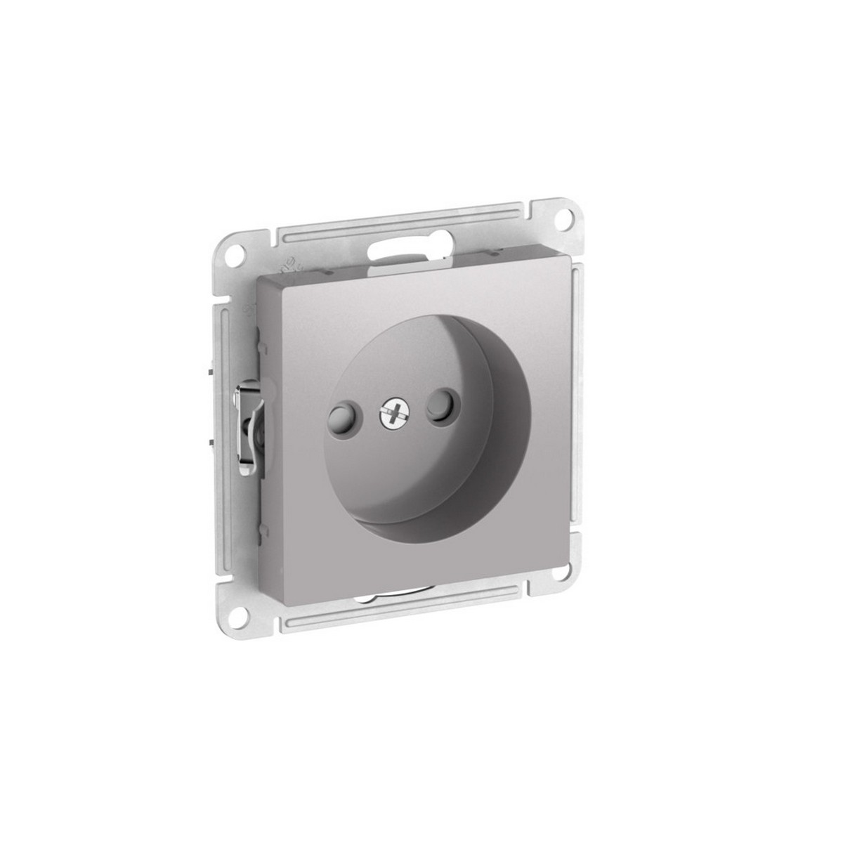 Механизм с быстрозажимными клеммами Systeme Electric (ранее Schneider Electric) серии AtlasDesign в цвете алюминий розетки одинарной без заземления со штороками подходит для сетей 250 В, на ток 16 А. С помощью новых быстрозажимных клемм монтаж розеток и выключателей стал намного быстрее. Теперь подключение не требует использования отвертки.