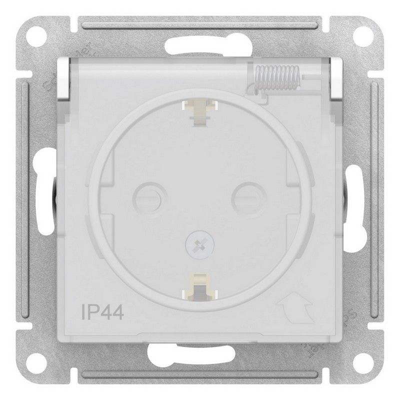 Розетка Systeme Electric AtlasDesign Aqua белого цвета с защитными шторками и крышкой, артикул ATN440146. Максимальная нагрузка 16А, степень защиты IP44 обеспечивает защиту от влаги и пыли, что делает её идеальной для использования в помещениях с повышенной влажностью. Эстетичный дизайн и высокое качество материалов гарантируют долговечность и надежность. Подходит для установки в ванных комнатах, кухнях и на открытых территориях.