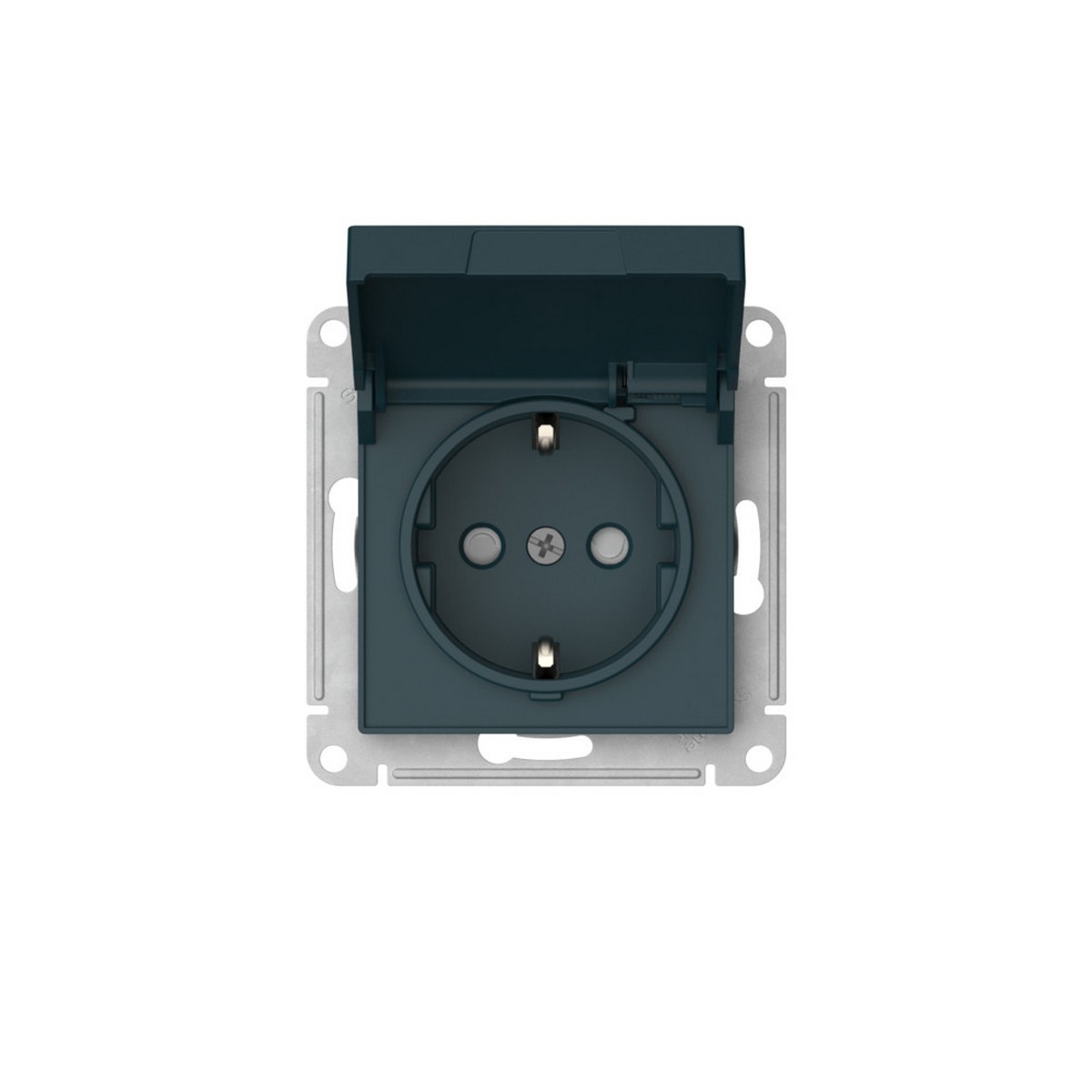 Механизм с быстрозажимными клеммами Systeme Electric (ранее Schneider Electric) серии AtlasDesign в цвете изумруд розетки одинарной с заземлением, со штороками и крышкой подходит для сетей 250 В, на ток 16 А. С помощью новых быстрозажимных клемм монтаж розеток и выключателей стал намного быстрее. Теперь подключение не требует использования отвертки.