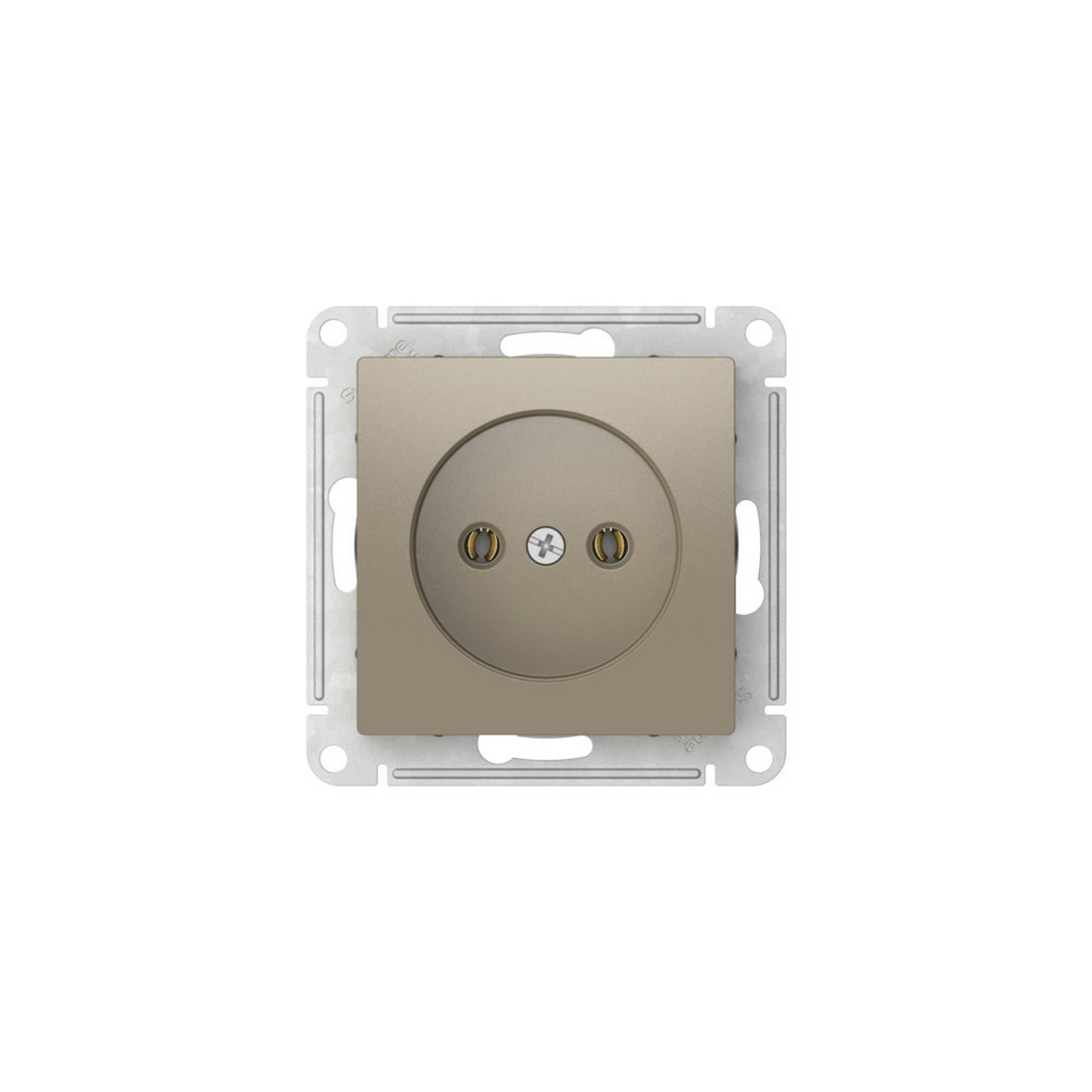 Механизм с быстрозажимными клеммами Systeme Electric (ранее Schneider Electric) серии AtlasDesign в цвете шампань розетки одинарной без заземления и без шторок подходит для сетей 250 В, на ток 16 А. С помощью новых быстрозажимных клемм монтаж розеток и выключателей стал намного быстрее. Теперь подключение не требует использования отвертки.