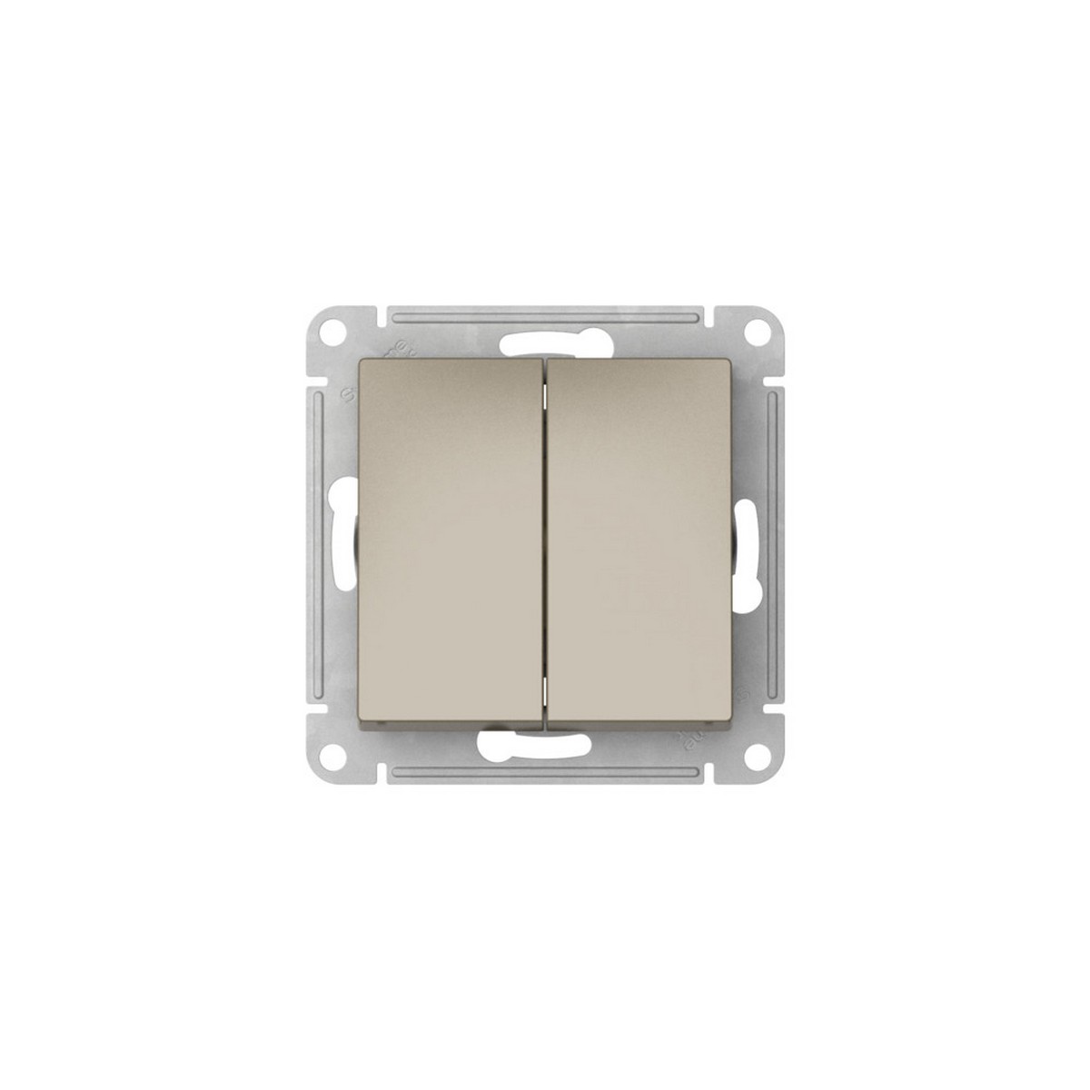 Механизм с быстрозажимными клеммами Systeme Electric (ранее Schneider Electric) серии AtlasDesign в цвете шампань 2-клавишного выключателя подходит для сетей 250 В, на ток 10 А. С помощью новых быстрозажимных клемм монтаж розеток и выключателей стал намного быстрее. Теперь подключение не требует использования отвертки.