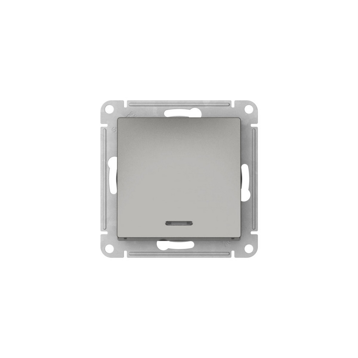 Механизм с быстрозажимными клеммами 1-клавишного выключателя с подсветкой Systeme Electric (ранее Schneider Electric) серии AtlasDesign в цвете сталь подходит для сетей 250 В, на ток 10 А. С помощью новых быстрозажимных клемм монтаж розеток и выключателей стал намного быстрее. Теперь подключение не требует использования отвертки.