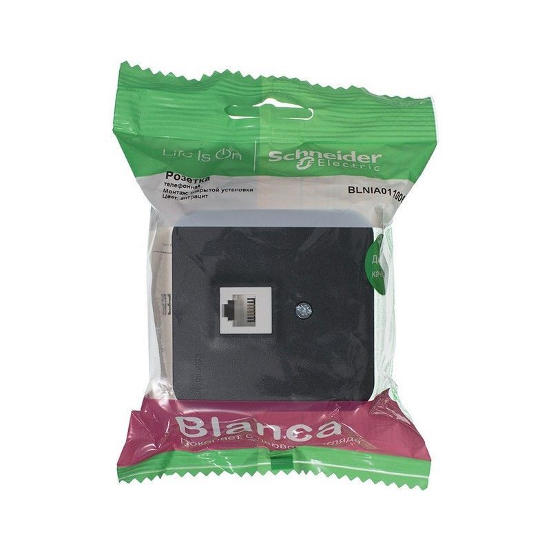 Розетка SE Blanca ТЛФ Антрацит предназначена для подключения телефонного оборудования. Обеспечивает надежное соединение благодаря изолирующей пластине. Стильный антрацитовый цвет впишется в любой интерьер. Подходит для наружного монтажа, идеальна для создания аккуратных и функциональных рабочих пространств. Производитель: Systeme Electric.