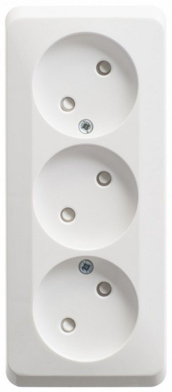 Розетка 3-ая Systeme Electric Этюд наружная, белая, с защитными шторками. Подходит для установки в помещениях и на улице. Максимальная нагрузка 16А при 250В. Обеспечивает безопасность при использовании электрических устройств. Идеальна для бытового и офисного применения.