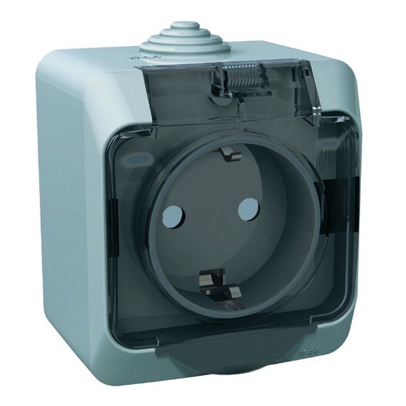 Розетка 1-ая Systeme Electric Этюд наружный Серая с/з с крышкой, с защитными шторками IP44 PA16-04 по цене 390 руб. с фотографией и техническими характеристиками. Для покупки товара нажмите кнопку "Купить" и перейдите в корзину или позвоните по телефону 8 (495) 585 32 60 или 8 (800) 222 23 53.