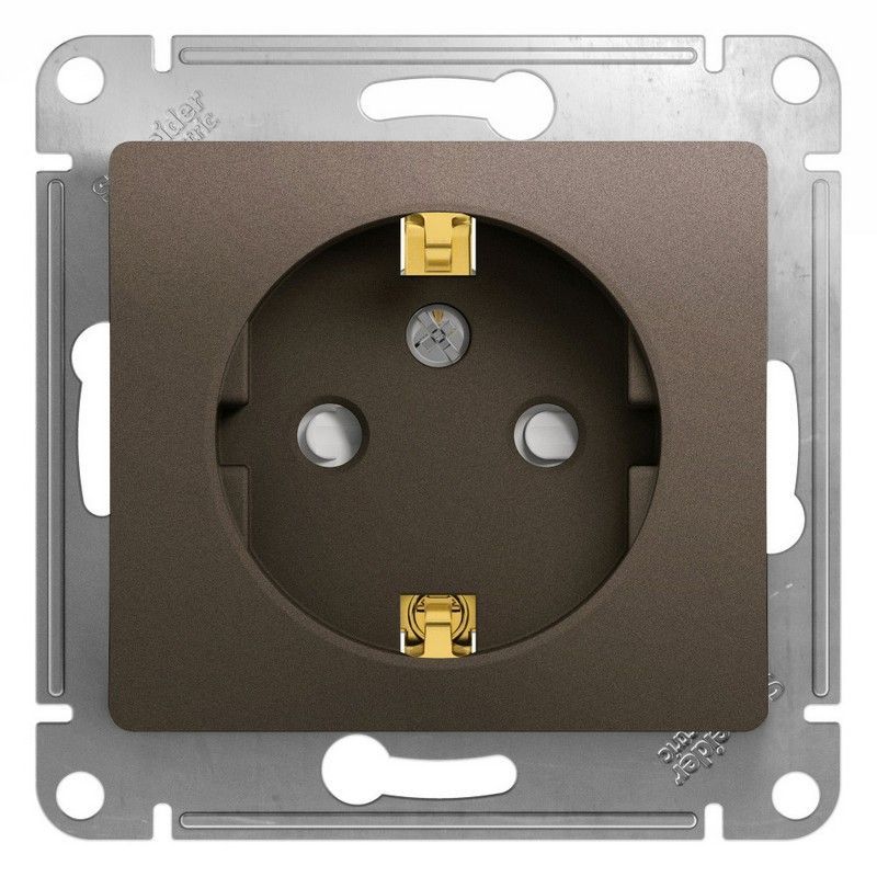 Розетка Systeme Electric Glossa в шоколадном цвете с заземлением и шторками - идеальное решение для вашего дома или офиса. С током в 16А она обеспечивает надежное подключение электроприборов, обеспечивая безопасность благодаря встроенным шторкам, которые предотвращают случайный контакт с токоведущими частями.